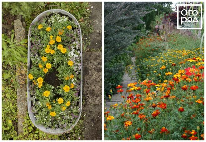 Маленькие, да удаленькие – так можно сказать о бархатцах. Эти, казалось бы, незамысловатые цветы выглядят очень привлекательно в больших групповых посадках, в составе мавританских газонов и миксбордеров. К слову, бордюры из бархатцев вокруг овощных грядок способны защитить урожай от вредителей.