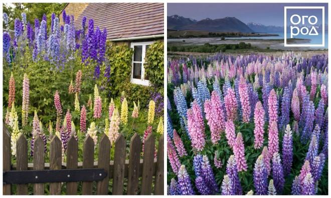 Те, кто видел поля люпина, могут абсолютно серьезно утверждать, что они ничем не хуже, чем хваленые лавандовые поля Прованса. Это бобовое растение вносит нотку рустикального, деревенского шика и украшает дачный участок своими красивыми лиловыми и розовыми цветками.